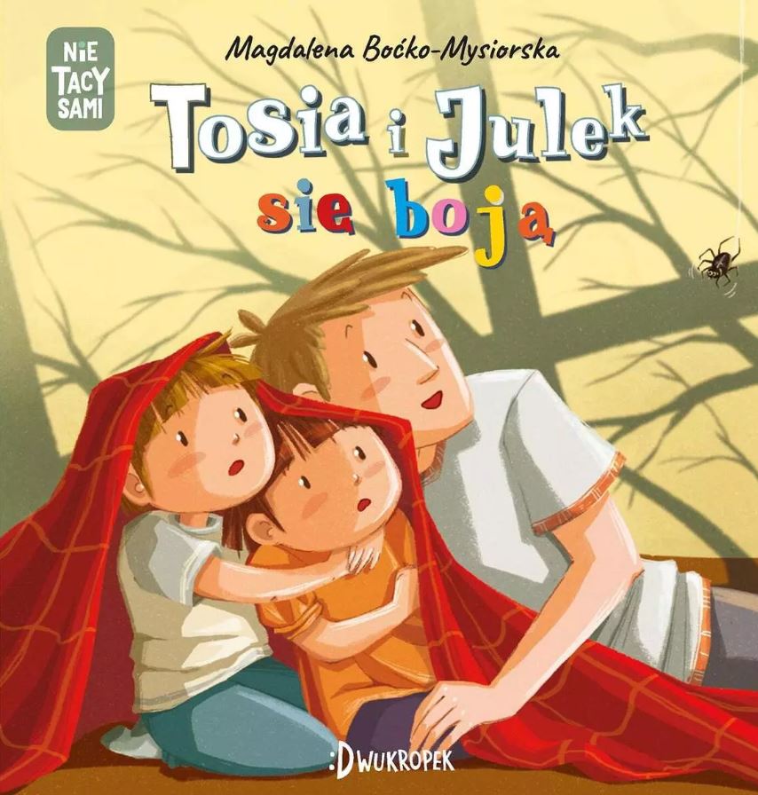 Gdy w pokoju dziecięcym zapada zmrok, Tosia odkrywa, że boi się ciemności. Wyobraźnia zaczyna płatać jej figle. Julek przyznaje, że boi się pająków. Ciepłe światło i obecność bliskich przeganiają strachy. Seria "(Nie) tacy sami" powstała z potrzeby serca – zarówno Autorki, jak i Wydawcy. Magdalena Boćko-Mysiorska - blog, świetna polska pedagożka, terapeutka, trenerka i blogerka, promotorka Rodzicielstwa Bliskości i Porozumienia Bez Przemocy stworzyła książki – i dla dzieci, i dla rodziców – jakich do tej pory nie było na polskim rynku. Nie tylko pokazujemy w nich emocje i ważne etapy w rozwoju dziecka – zawsze robimy to z uwzględnieniem jego wrażliwości sensorycznej. W każdej książeczce towarzyszymy dwójce bohaterów – bliźniętom, Tosi i Julkowi, którzy są skrajnie różni i dlatego w tych samych sytuacjach reagują w różny sposób.